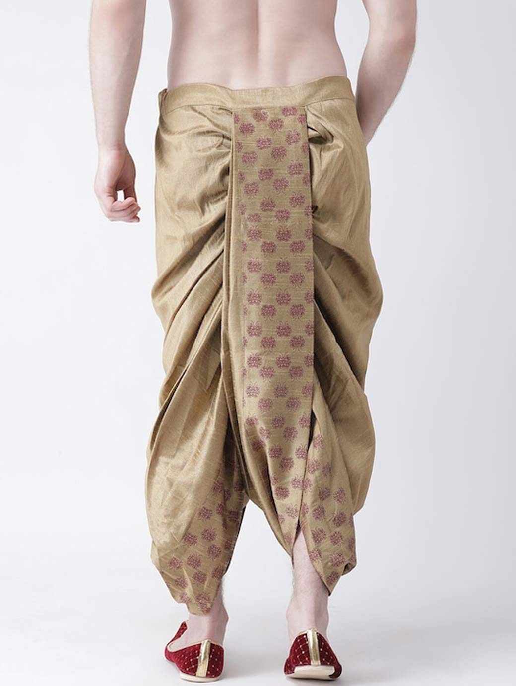 Beige and maroon printed regular-fit dhotis, with gathered and pleated detail, has a waistband with a drawstring fastening Disclaimer: Product color may slightly vary due to photographic lighting sources or your monitor settings