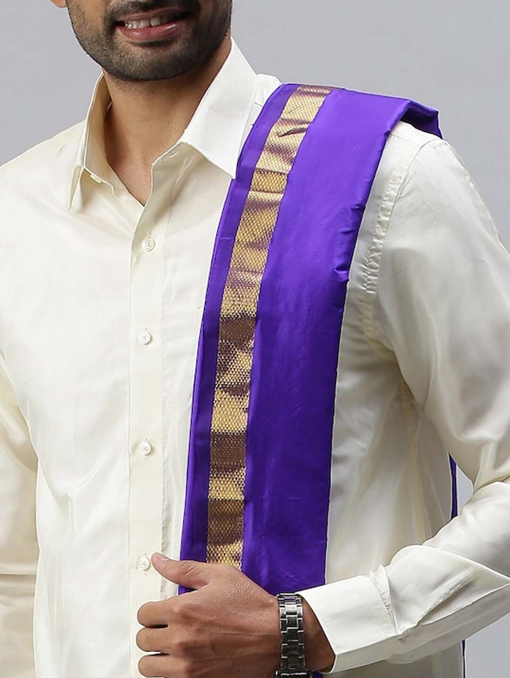 Blue solid mid-rise dhoti, has gold-coloured border Features: Silk Mark Certified Product