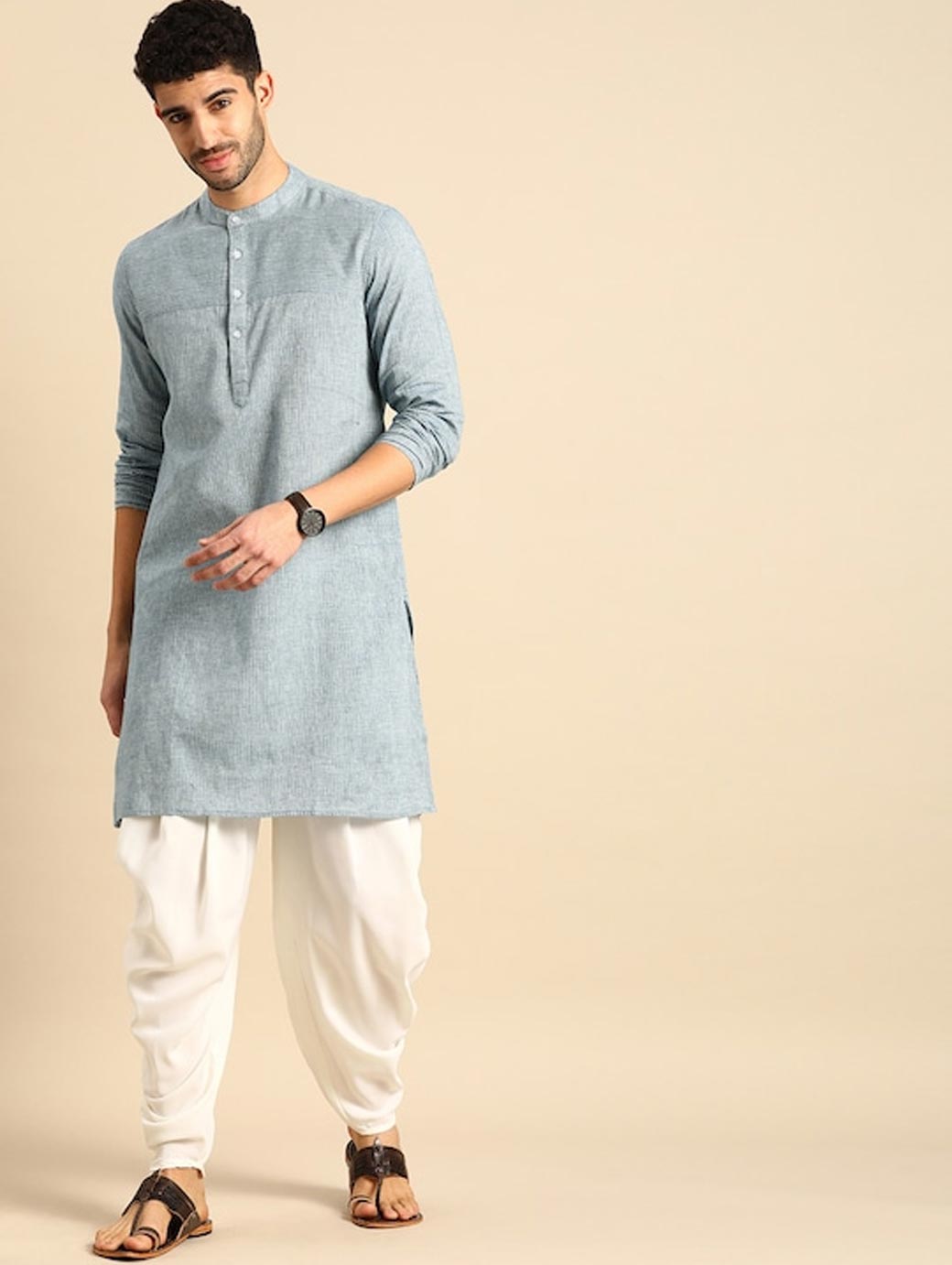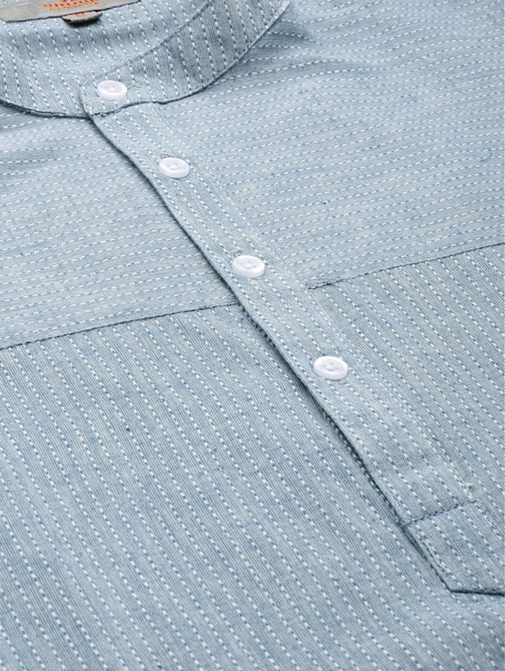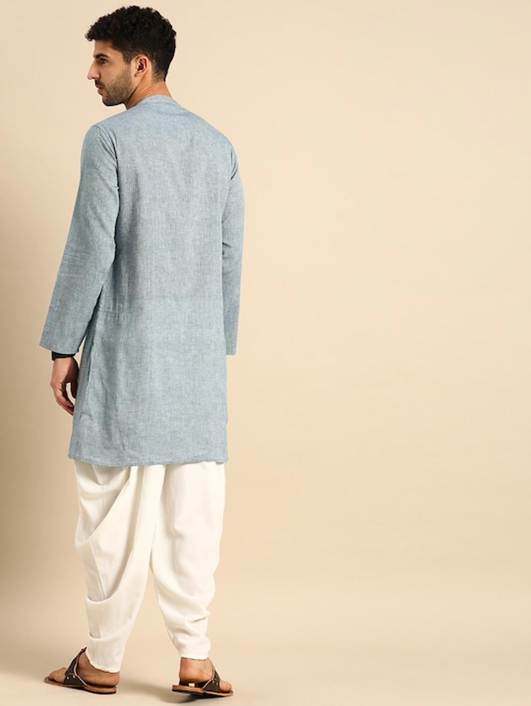 Men Blue & White Self-Design Pure Cotton Kurta with Patiala