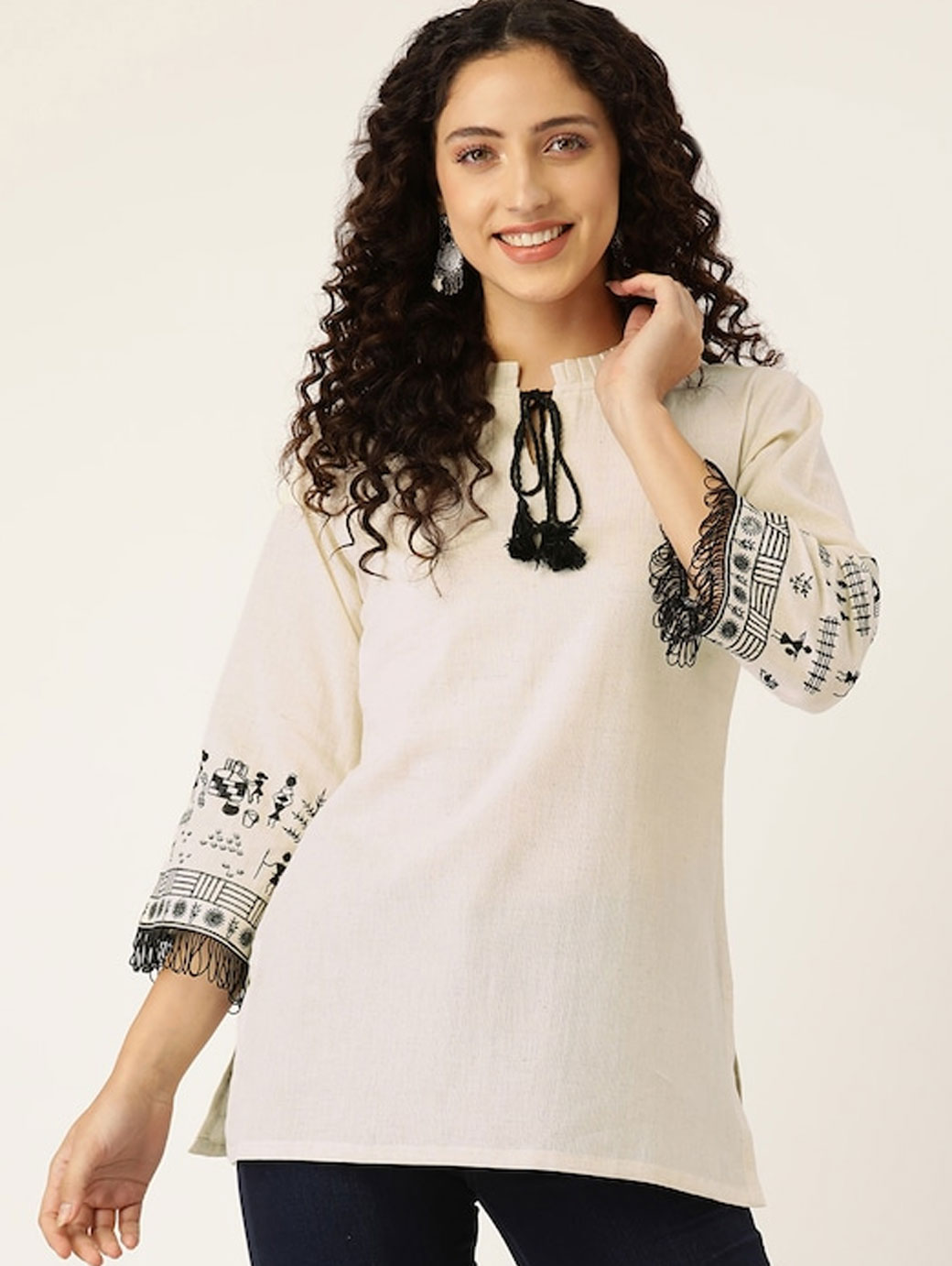 Off white regular peplum top Self design self design Shoulder straps, sleeveless, shoulder straps sleeves Woven.