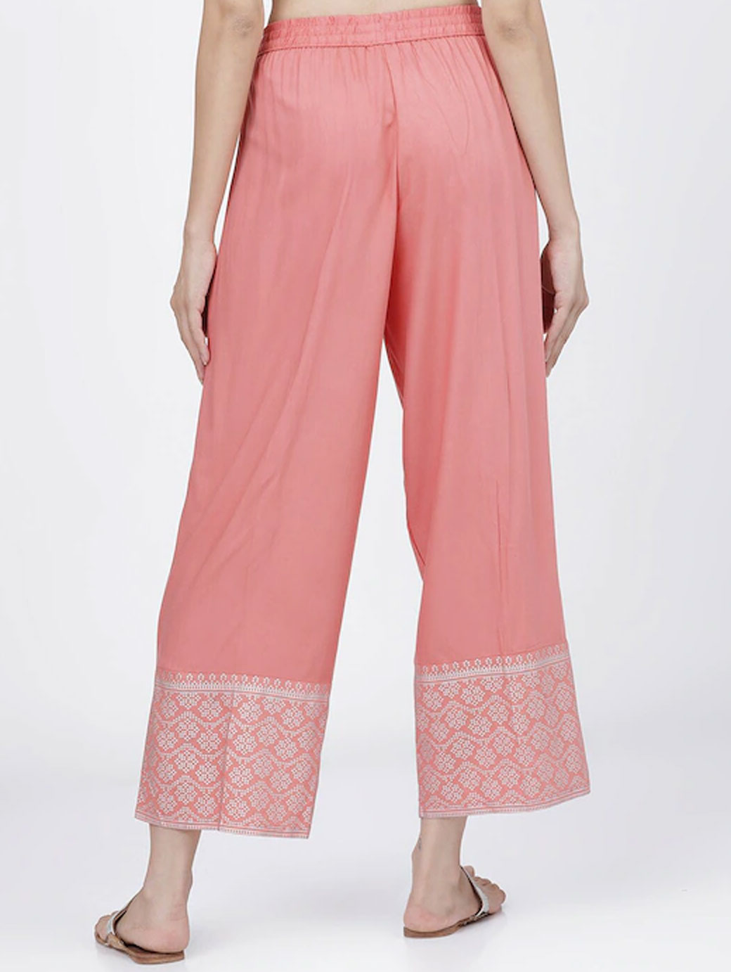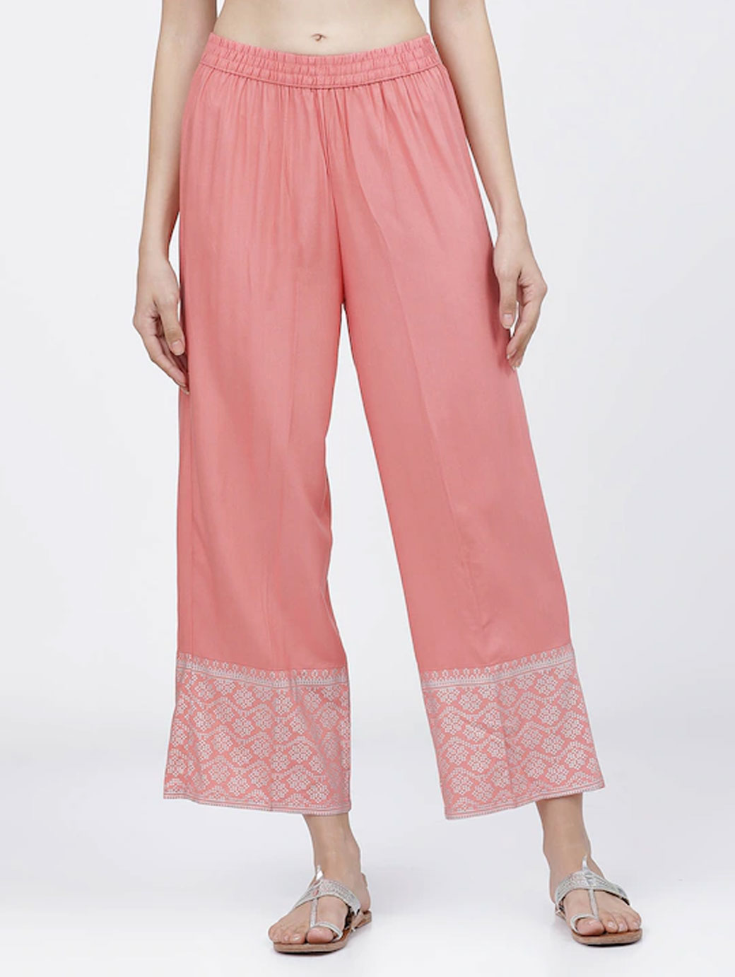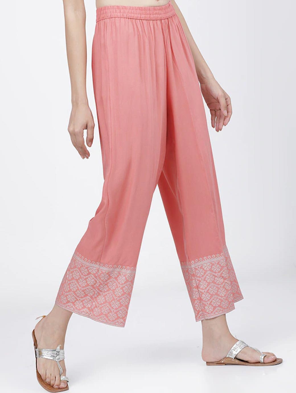 Women Coral & Silver-Toned Ethnic Motifs Hem Design Ethnic Palazzos