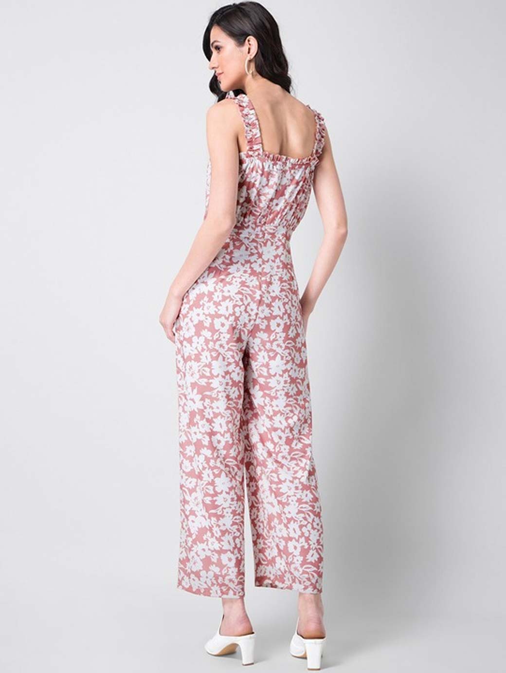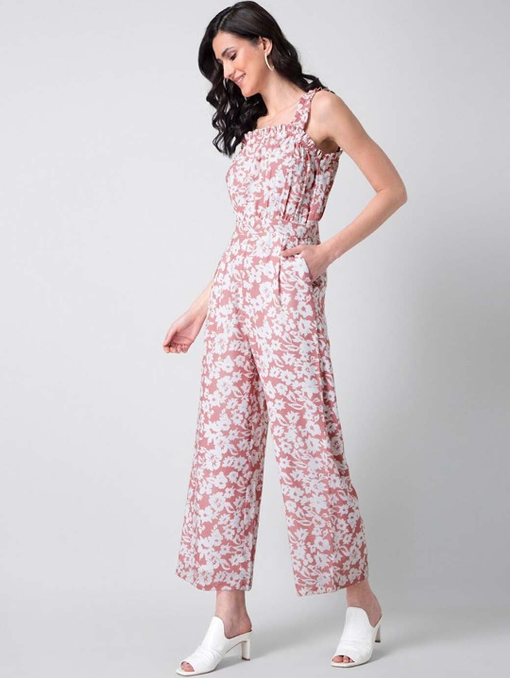 Women Pink & White Floral Printed Basic Jumpsuit