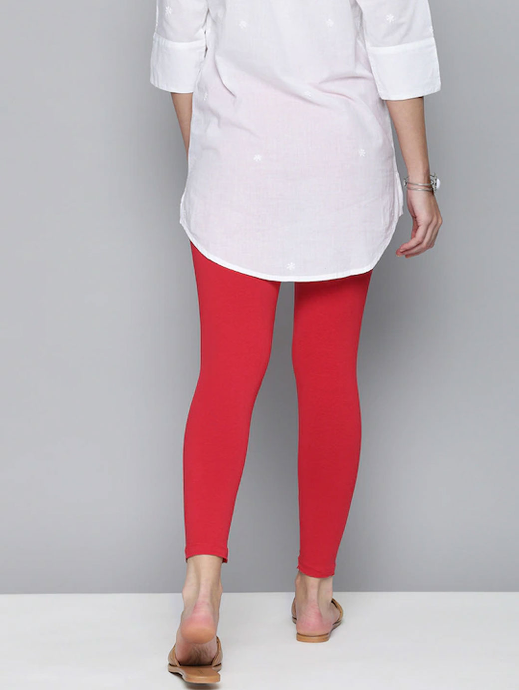 Red solid leggings with an elasticated waistband