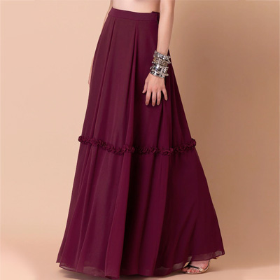 Maroon Solid tiered maxi skirt, has an elasticated waistband with slip-on closure, ruffled Flared hem and an attached lining